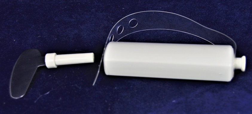 Mounted with plastic spigots, that are pushed in to fit tightly into the Double Ended handle with strap The Double Ended handle with strap provides additional control for the knife handling.