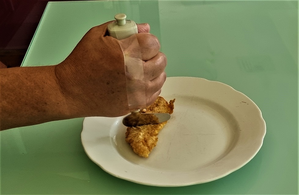 Kings Modular Cutlery Small Rocker Knife is for cutting food with minimum rocking movement, this is the most flexible way to assist people with limited mobility in their arms while eating.