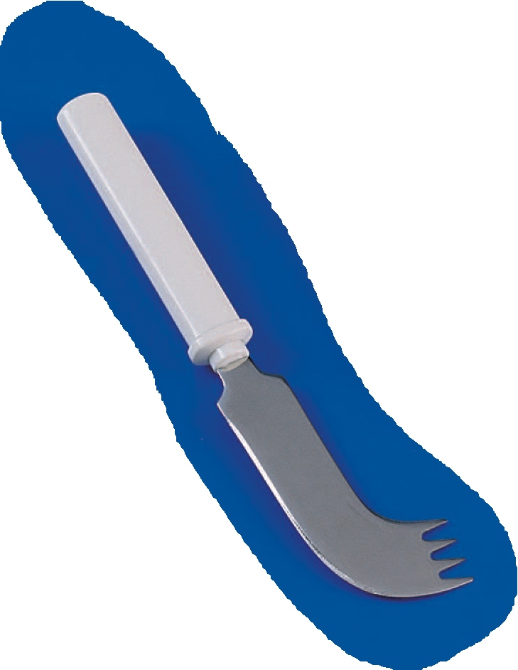 Nelson Knife - a stainless steel aid designed for one-handed eating.