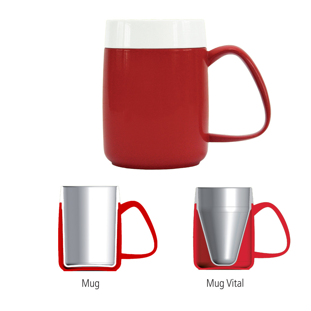 ■ thermodynamic function helps contents stay warm or cool ■ large ergonomic handle for easy grip ■ white interior ensures colour of drink is maintained