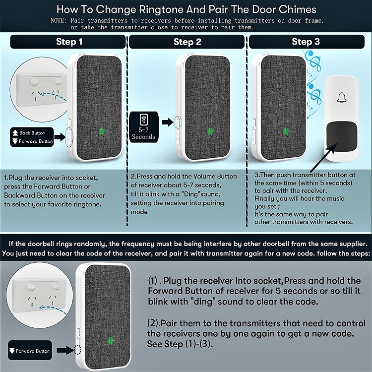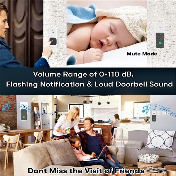 Operates at a highest distance up to 400m in open air. Strong Working Signal doorbell for most material door or wall, including metal, glass, wood; Louder chime also great use in big house, hospital,classroom, office, warehouse.